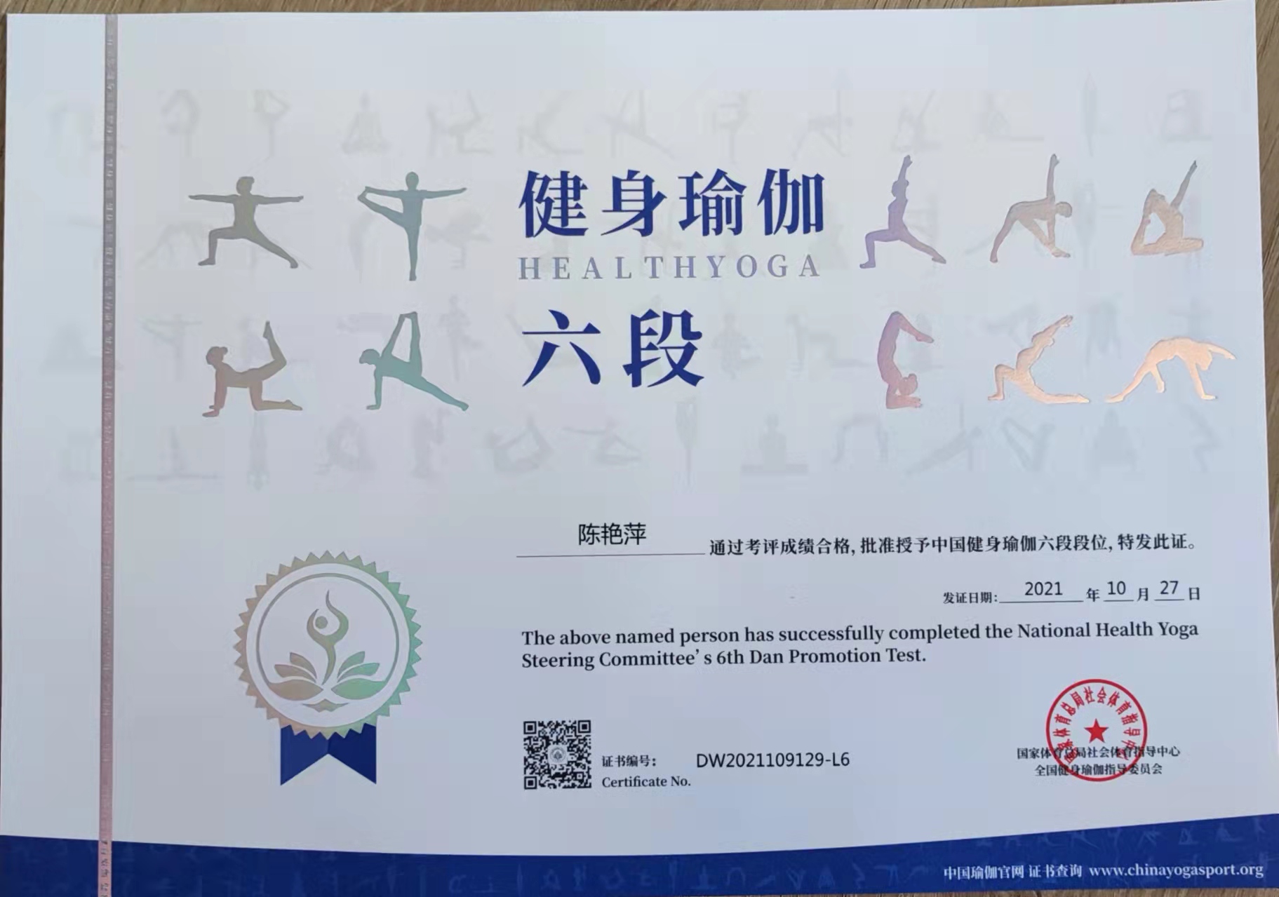 陈艳萍中国健身瑜伽六段