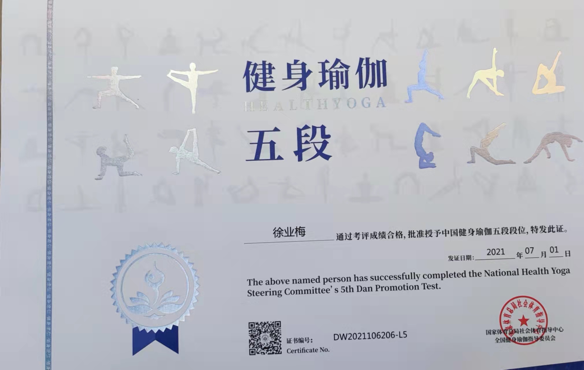徐业梅中国健身瑜伽五段