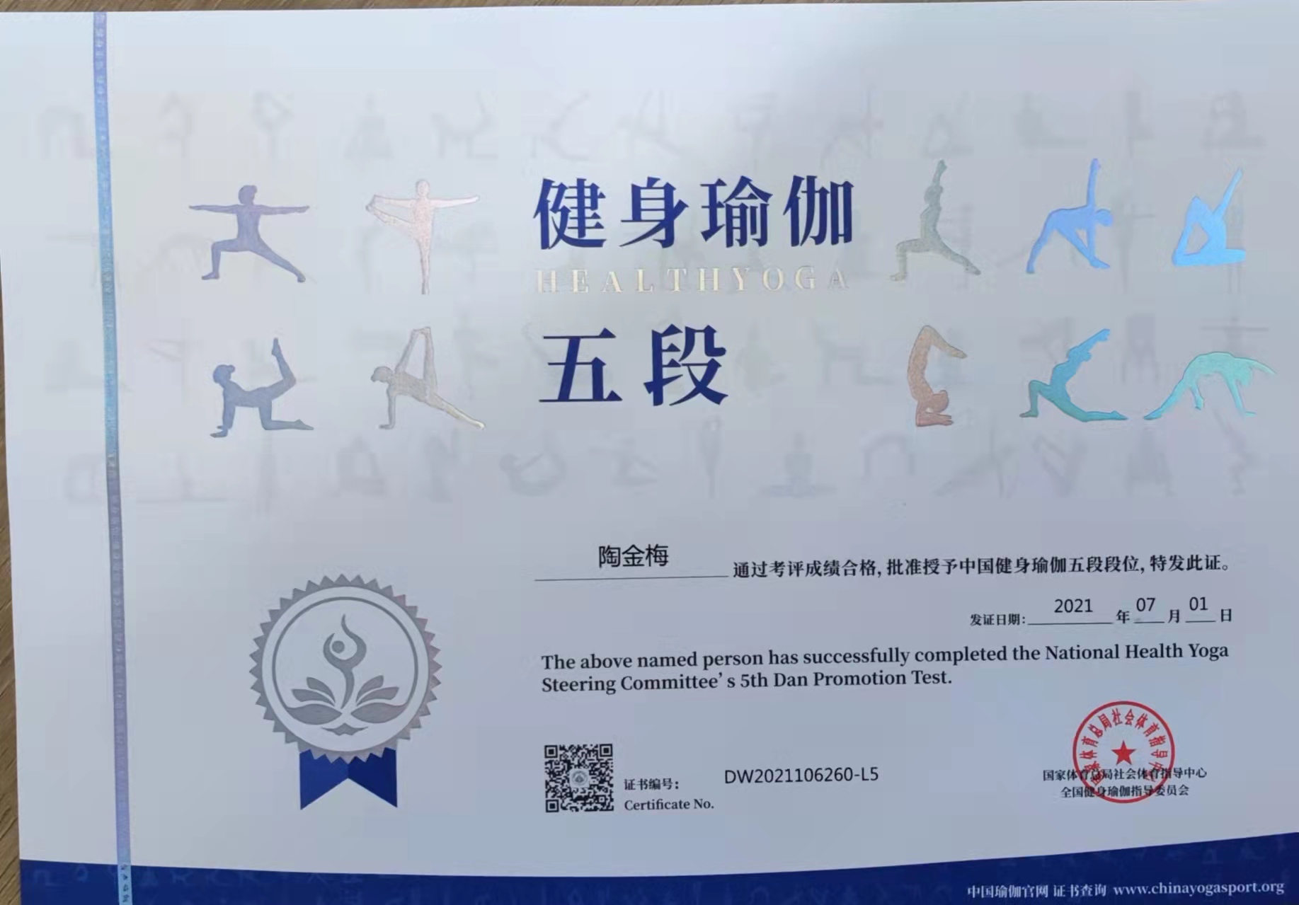 陶金梅中国健身瑜伽五段