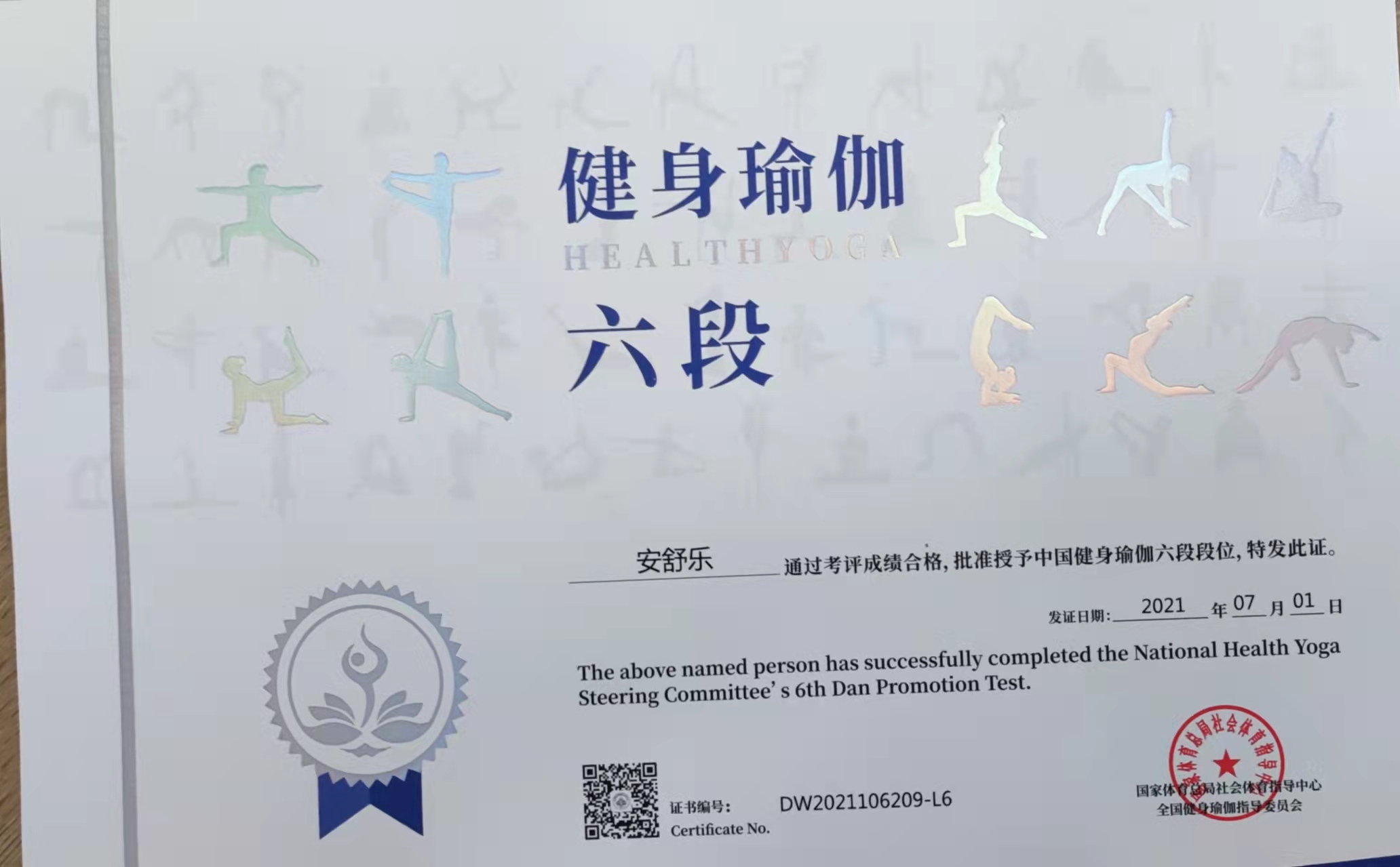 祝贺安舒乐在西安薄珈梵歌五星级场馆荣获国家体育总局健身瑜伽六段段位