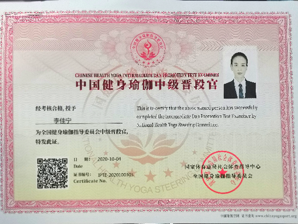 李佳宁中国健身瑜伽中级晋段官