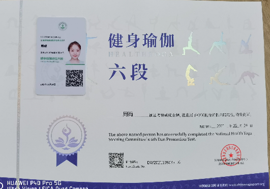 祝贺周娟在西安薄珈梵歌五星级场馆荣获国家体育总局健身瑜伽六段段位