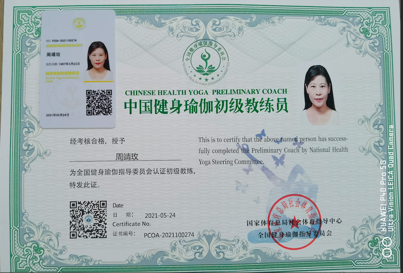 周靖玫中国健身瑜伽初级教练员