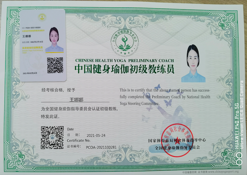 王娜娜中国健身瑜伽初级教练员