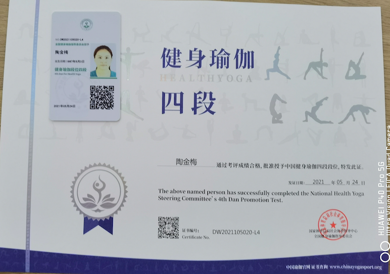 祝贺陶金梅在西安薄珈梵歌五星级场馆荣获国家体育总局健身瑜伽四段段位