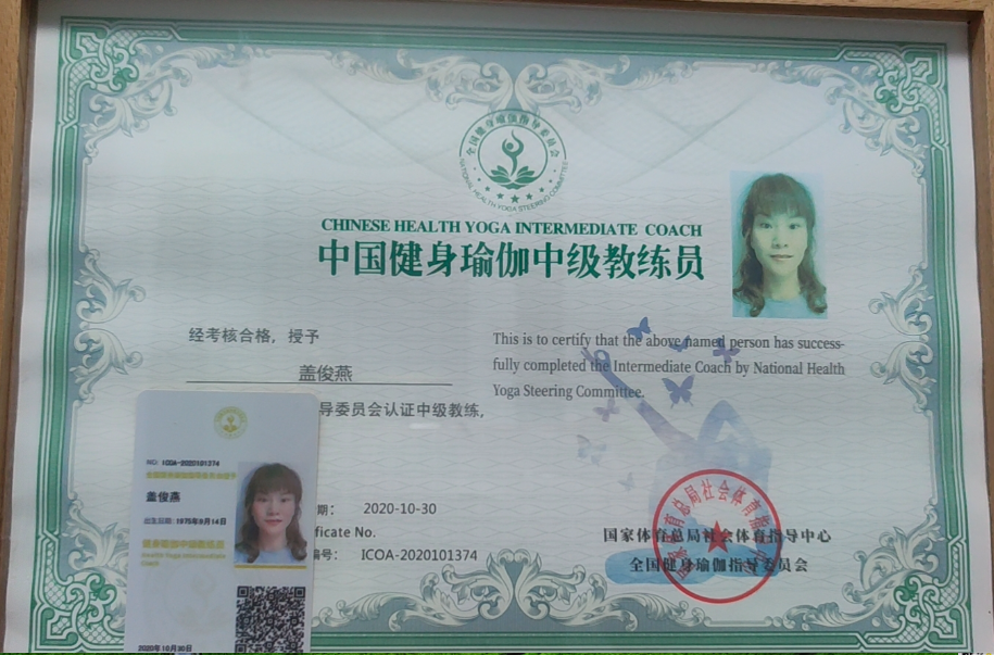 盖俊燕中国健身瑜伽中级教练员