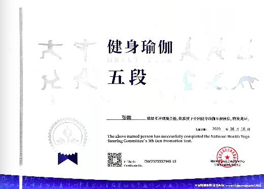 祝贺张蓉在西安薄珈梵歌五星级场馆荣获国家体育总局健身瑜伽五段段位