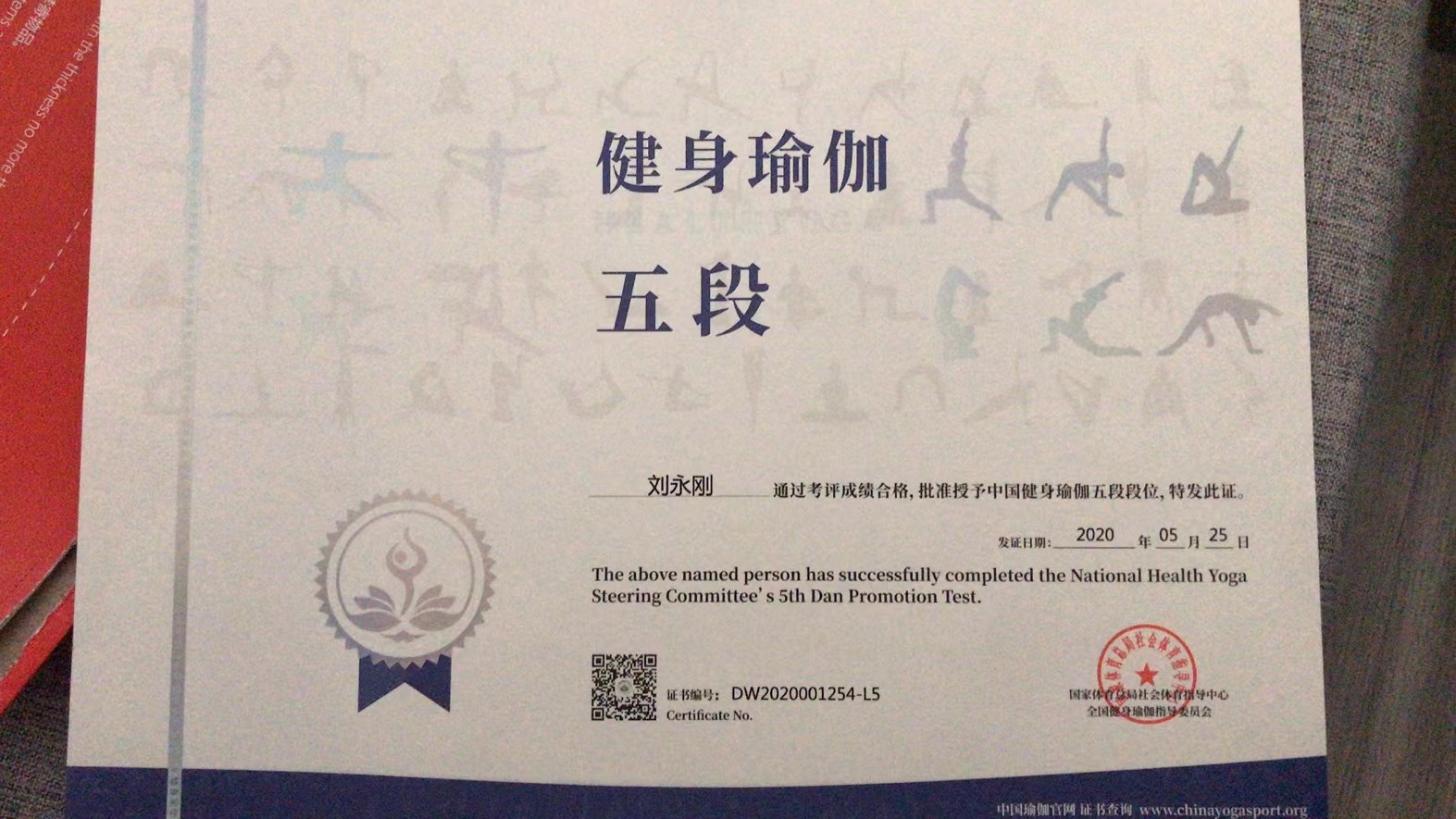 刘永刚中国健身瑜伽五段