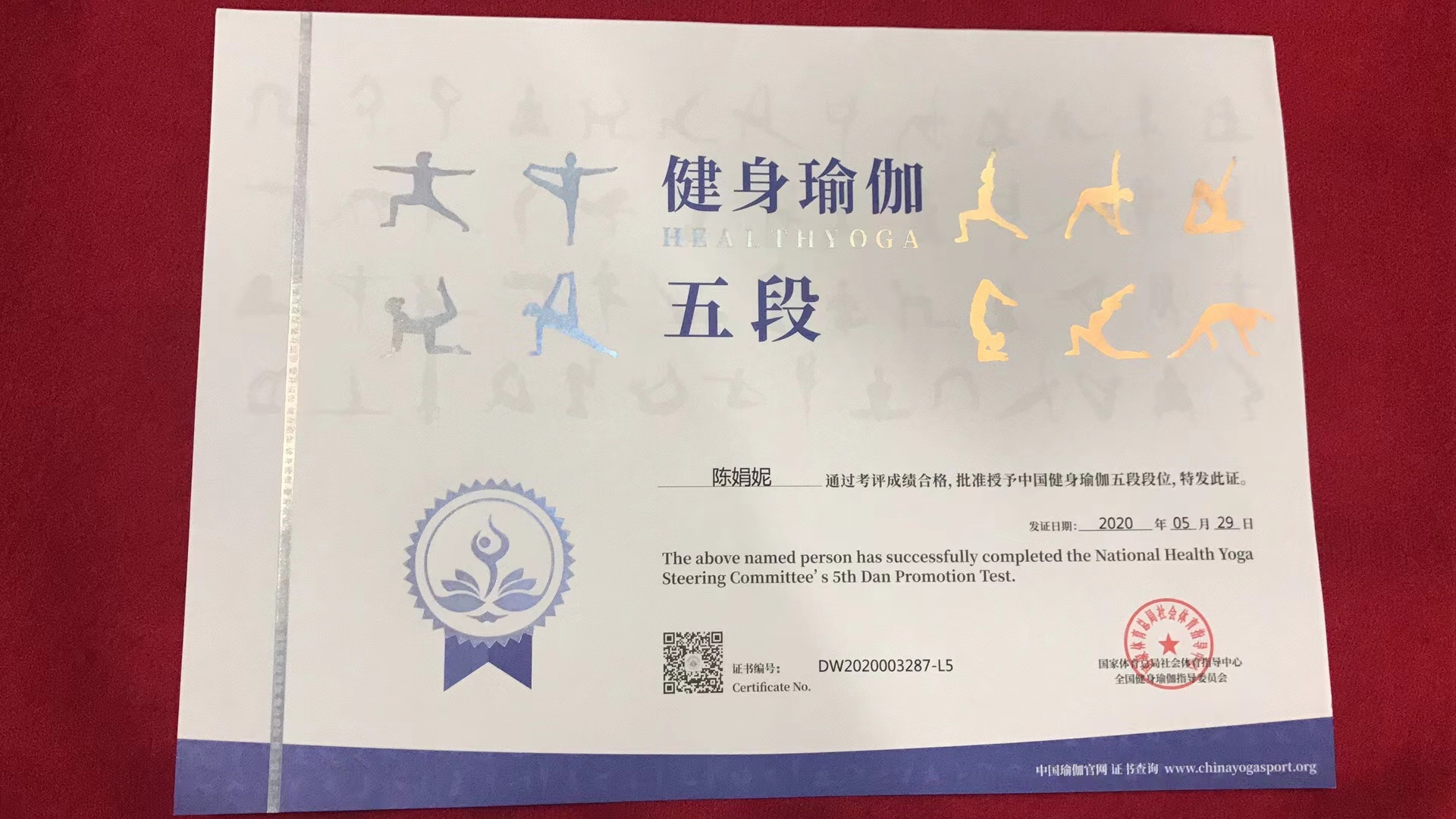 陈娟妮中国健身瑜伽五段