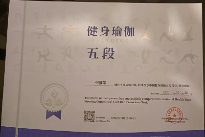 祝贺张雅萍在西安薄珈梵歌五星级场馆荣获国家体育总局健身瑜伽五段段位