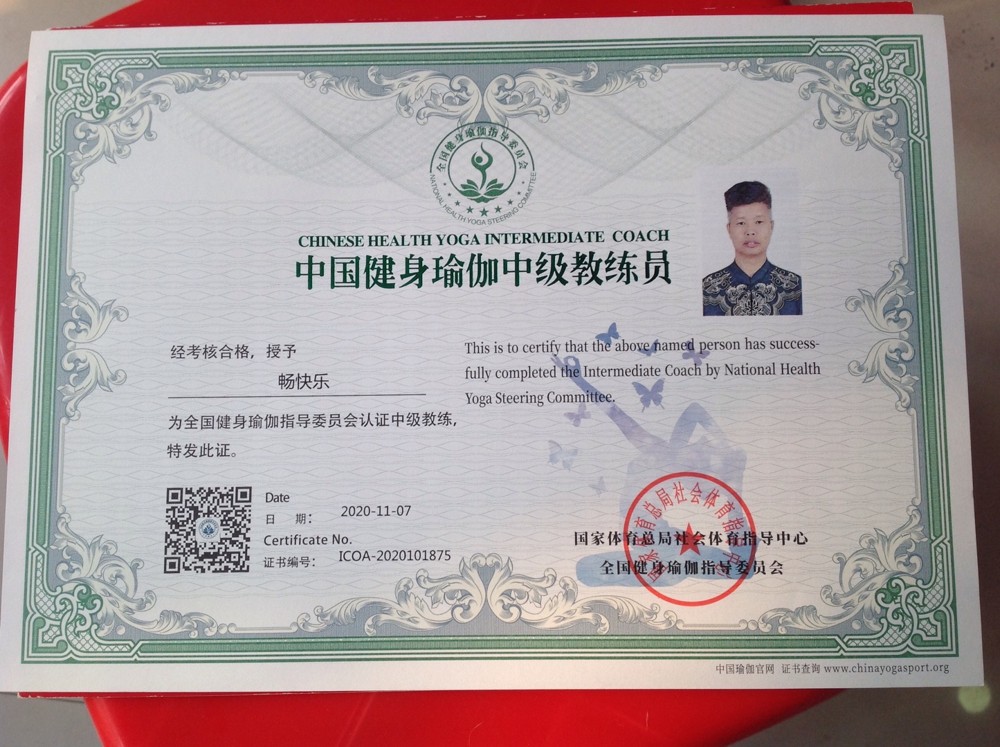 畅快乐中国健身瑜伽中级教练员