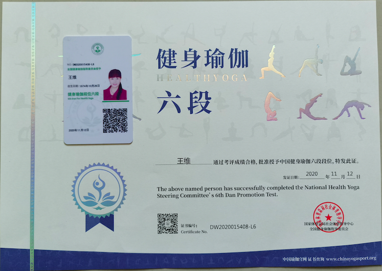 祝贺王维在西安薄珈梵歌五星级场馆荣获国家体育总局健身瑜伽六段段位