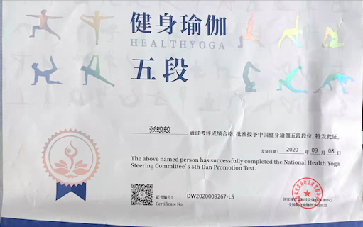 祝贺张姣姣在西安薄珈梵歌五星级场馆荣获国家体育总局健身瑜伽五段段位