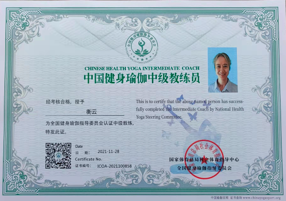 衡云中国健身瑜伽中级教练员