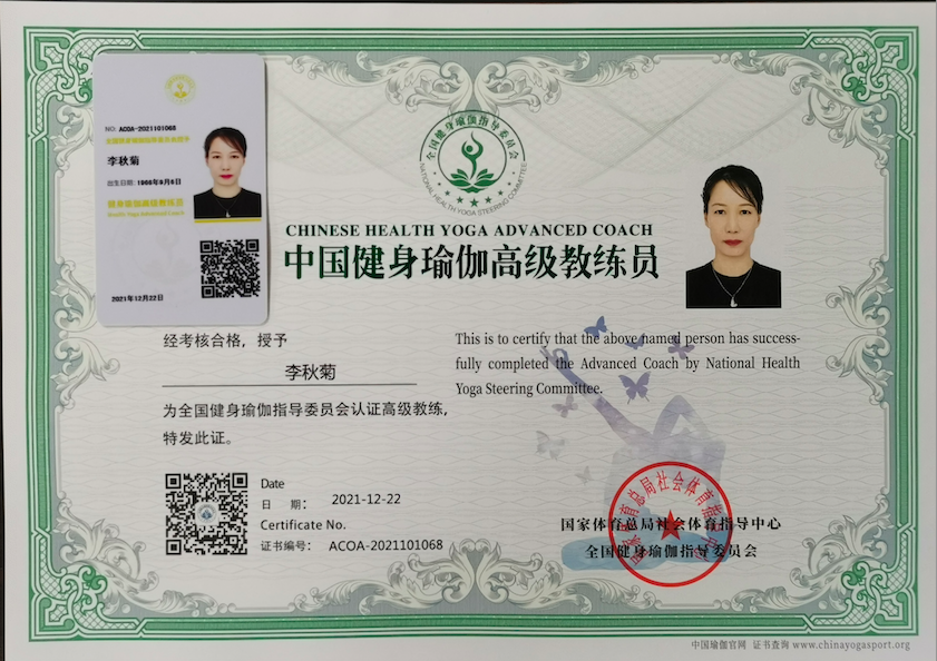 李秋菊中国健身瑜伽高级教练员