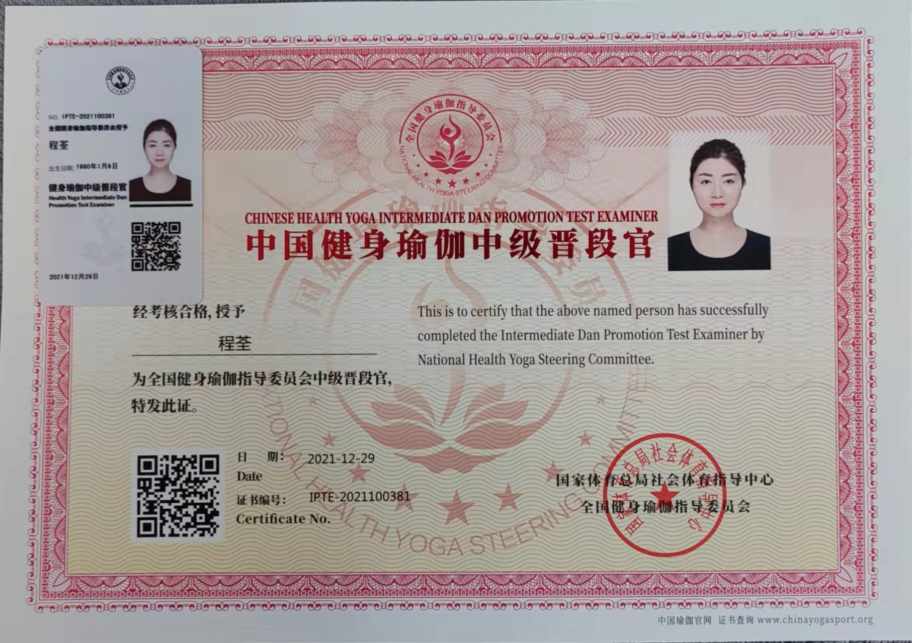 程荃中国健身瑜伽中级晋段官