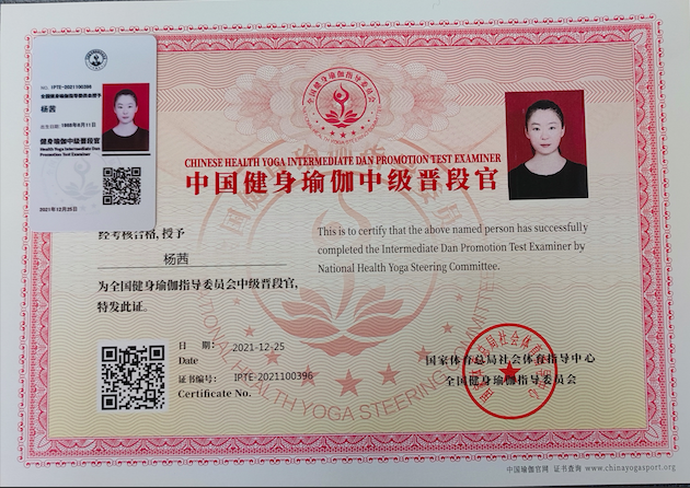 杨茜中国健身瑜伽中级晋段官