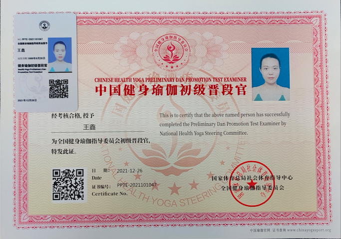 王鑫中国健身瑜伽初级晋段官