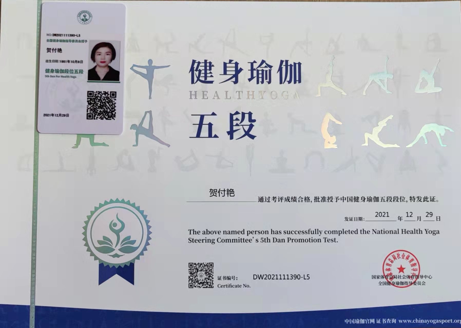 贺付艳中国健身瑜伽五段段位