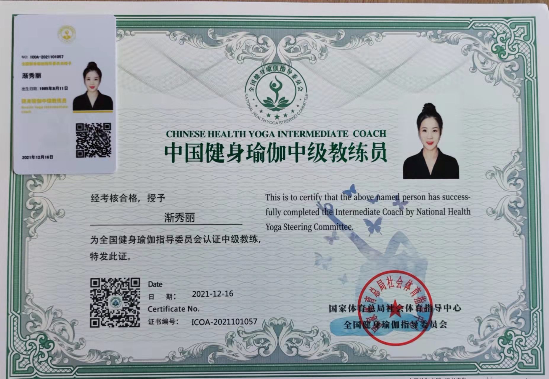 渐秀丽中国健身瑜伽中级教练员