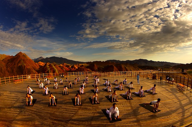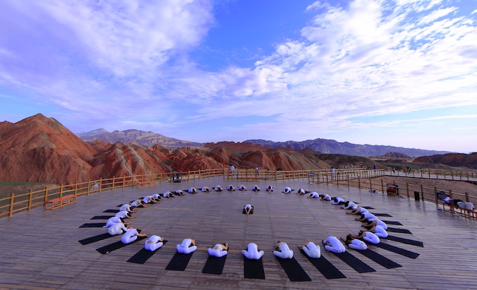 薄珈梵歌学院-张掖印橡瑜伽教学分部-丹霞地质公园户外晨练