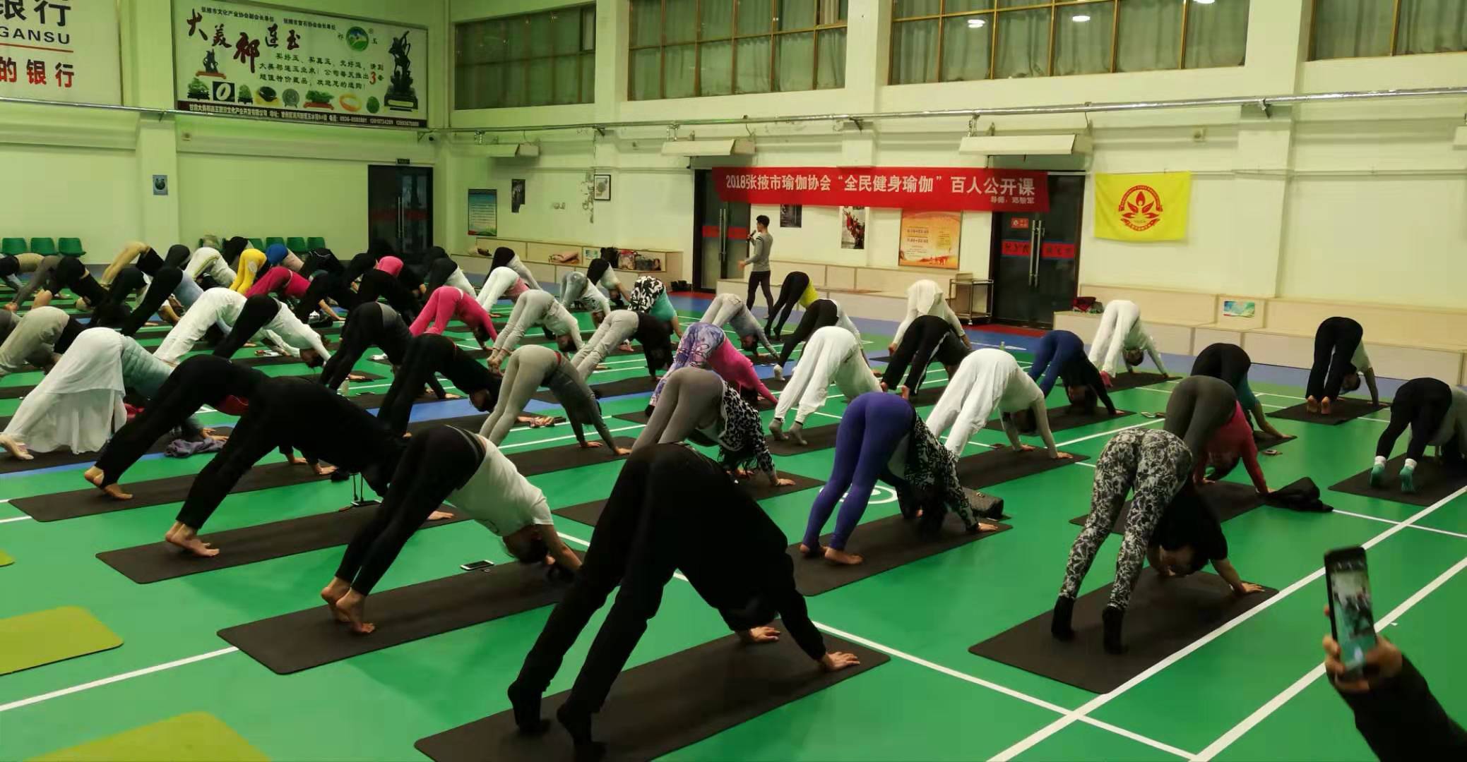Leon老师甘肃省张掖市全民健身中心百人瑜伽活动